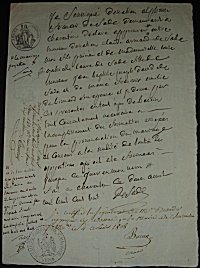 サド侯爵署名3ヶ所、シャラントン市長ビュラン証明署名入り。